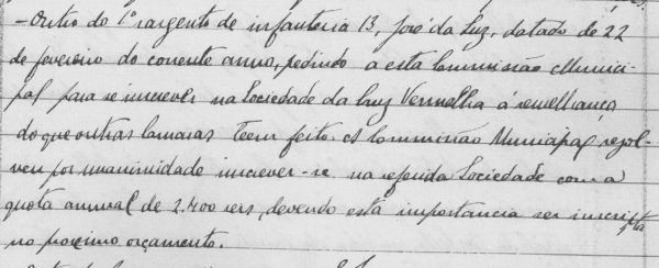 A 29 de Outubro de 1863 foi fundado o movimento internacional para "protecção aos feridos e doentes de guerra". Nascia a Cruz Vermelha. Lembramos aqui esta nobre instituição, com o pedido feito pelo 1º sargento de infantaria, José da Luz, para a inscrição da Câmara Municipal de Vila Real naquela sociedade. AMVR/B/A/001/Lv071, fl. 114.